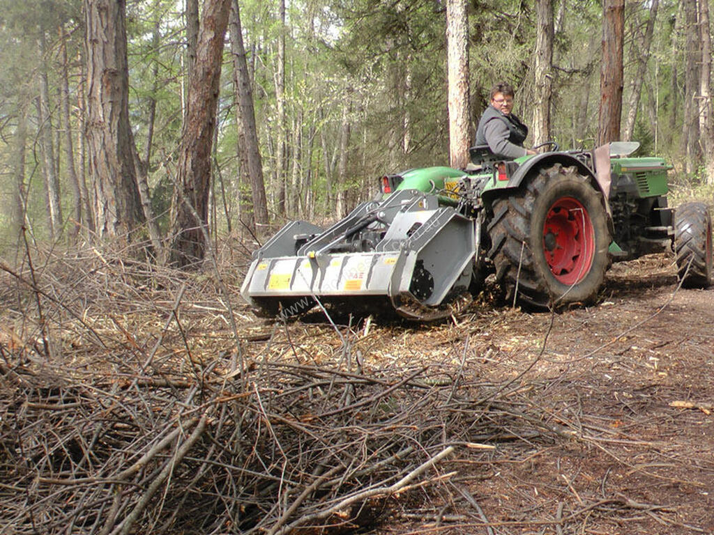 Description: Forestry mulcher with fixed teeth rotor for tractors between 60 and 110 HP.